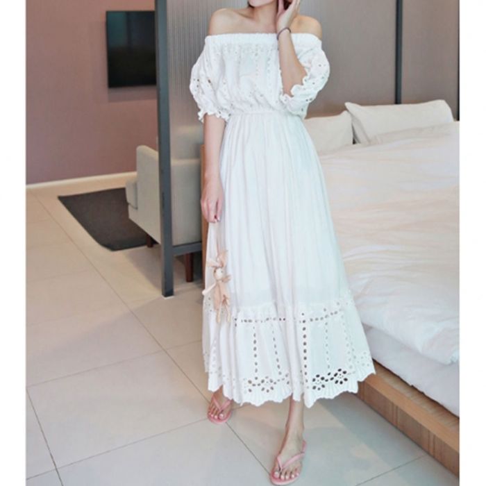 【カラー】 ・アイボリー 【素材】 ・コットン 【仕様】 伸縮性:なし 透け感:あり 裏 地:あり シーズン:夏 ※ウエストゴム 裏地ウエストから裾まで44cm 【サイズ】 (着丈/バスト/ウエスト) S : 105cm / 82cm / 56-76cm M : 106cm / 86cm / 60-80cm L : 107cm / 90cm / 64-84cm XL: 108cm / 94cm / 68-88cm ※実寸を記載しておりますので、お手持ちのお洋服と比較いただけると、サイズ選びの目安になります。