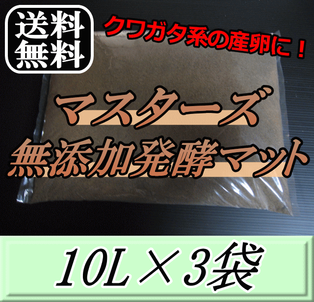 レビューをお願い致します◆送料無料!マスターズ熟成無添加発酵マット 10L×3袋 クワガタムシの産卵に最適なクワガタマット!害虫の混入99%なし! クワガタムシ 産卵用 超高品質 昆虫マット 幼虫のエサ 土
